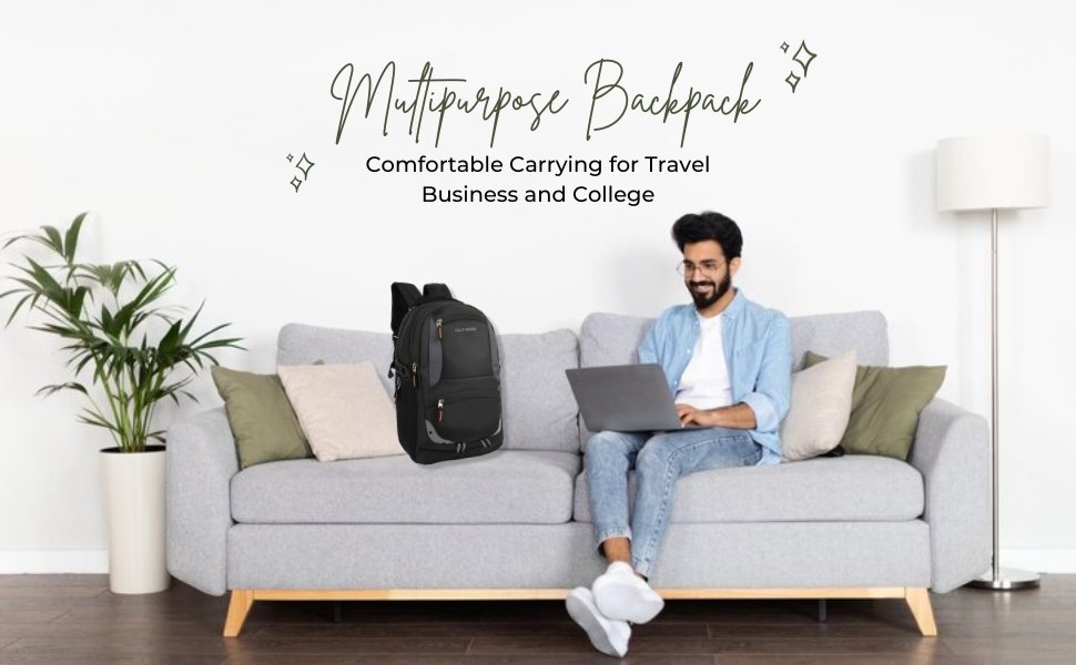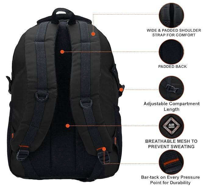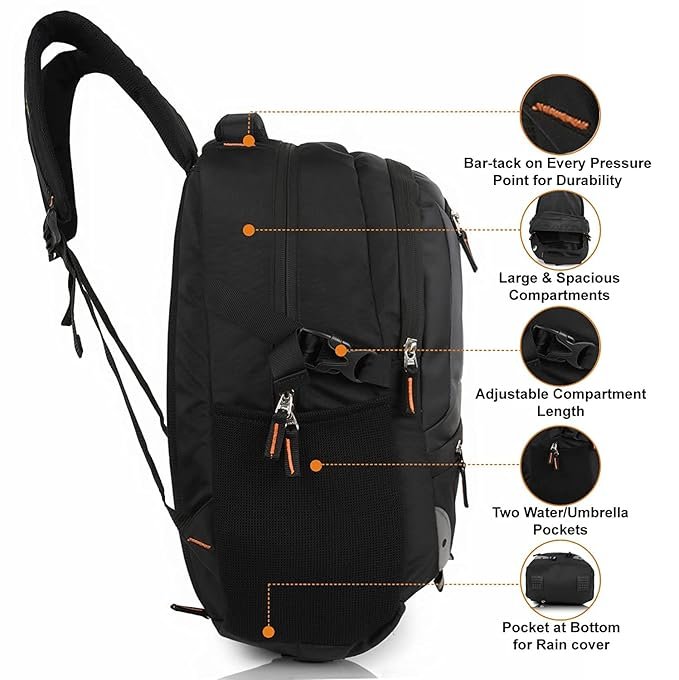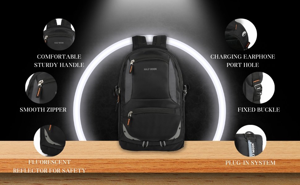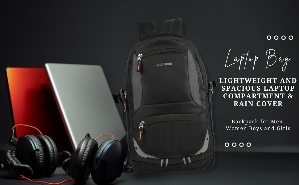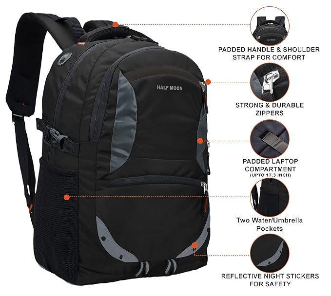 Half Moon 35L Laptop Backpack College School Travel Bag Backpack For Men Women Boys Girls With Rain Cover, Black