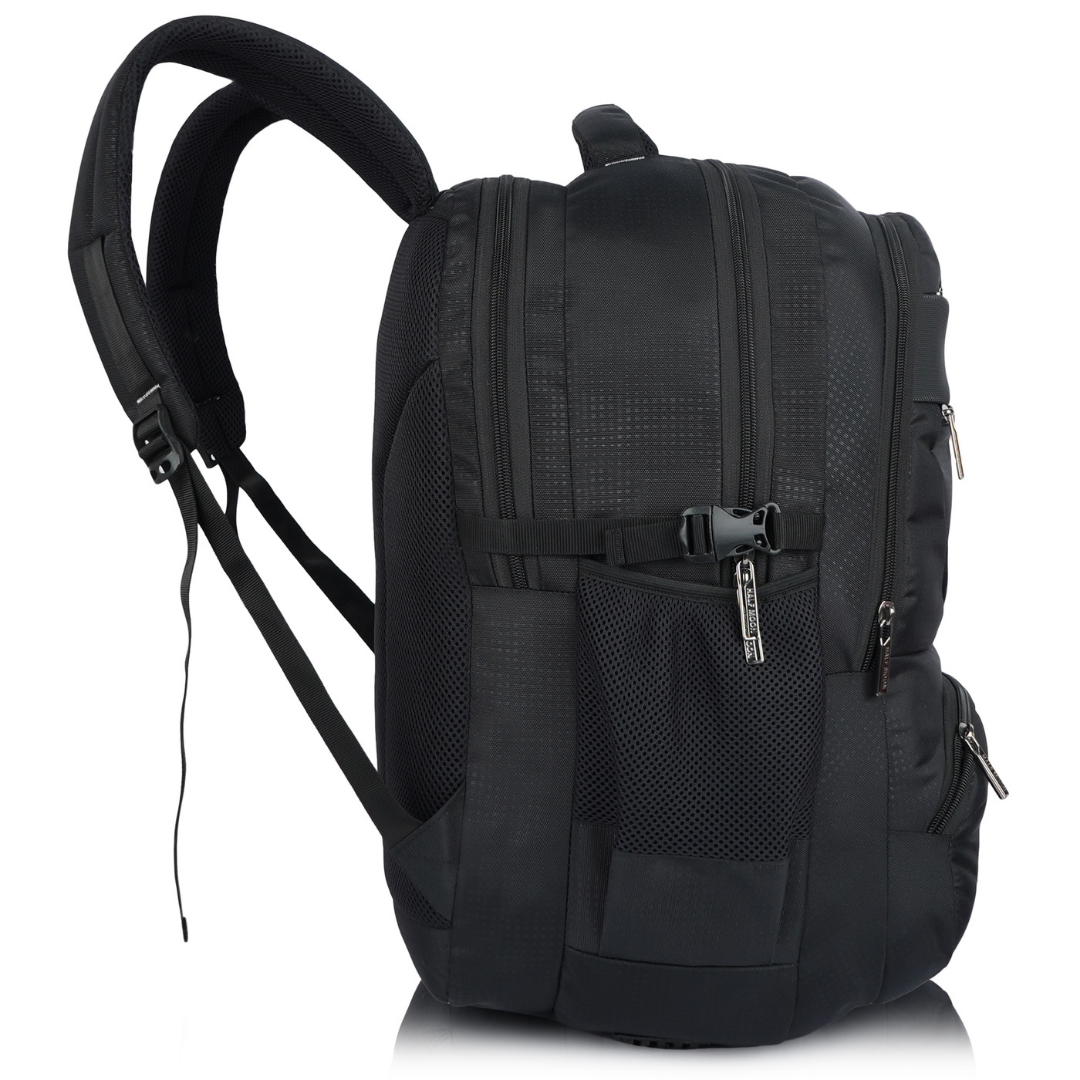 comfortable for men and women on long trekking trips or all-day college use. - 2 Mesh Side Bottle Pockets: Open-top mesh pockets on both sides hold steel
