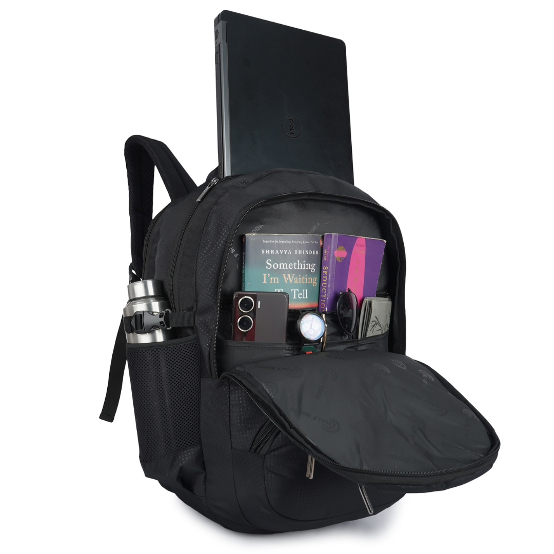 bottles, umbrellas, or trekking poles — no more stopping to open your bag for a sip. - Branded Half Moon Lining: Premium all-over Half Moon logo printed lining