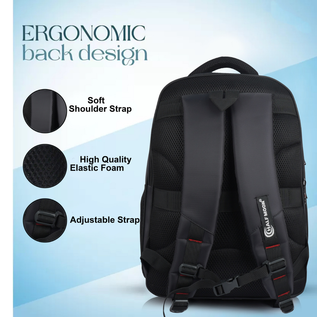 • Ergonomic elastic foam back panel with 3D air mesh and wide padded shoulder straps for all-day comfort